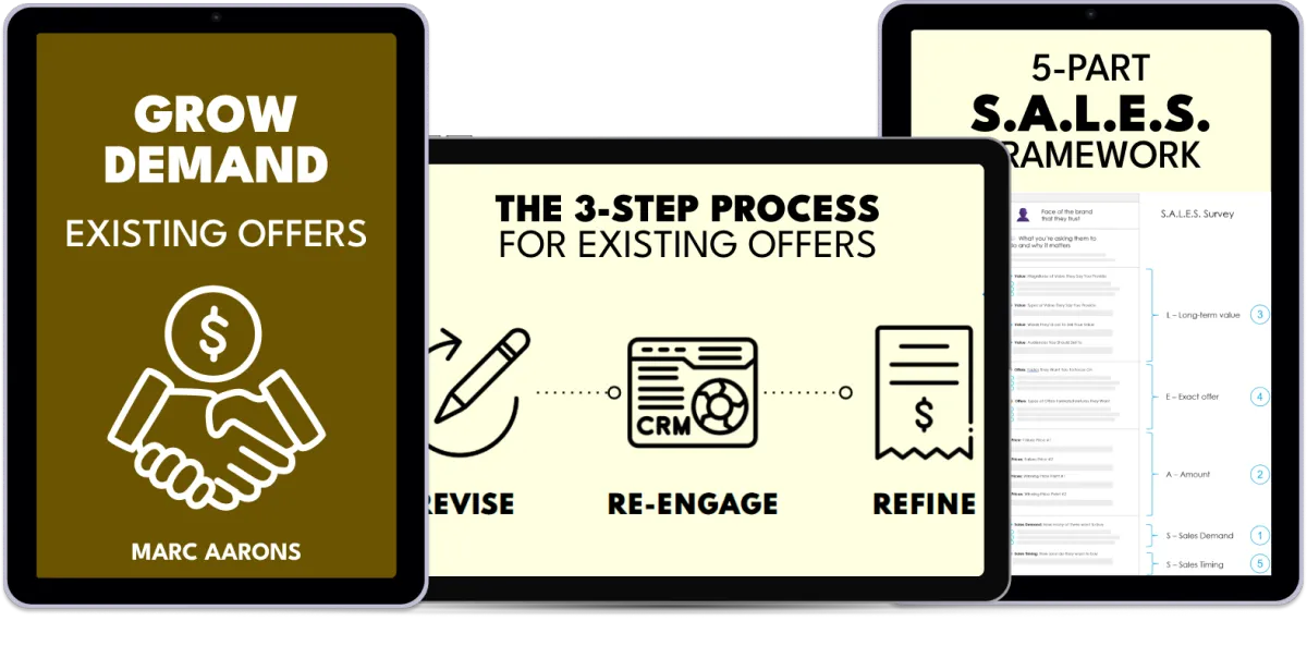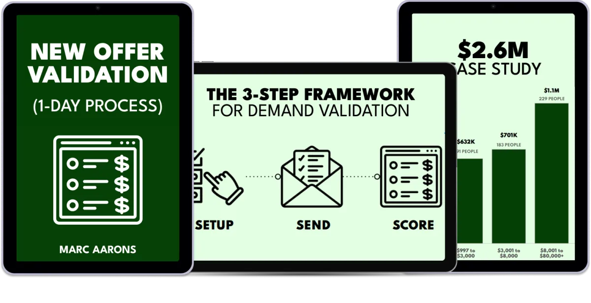 Chapter 2 dives into how to quickly revise your demand validation survey for existing offers. For past clients, we’ve seen this turn “unengaged leads” into “ready to buy” sales opportunities, with little effort. For others, they’ve gotten invaluable feedback on how to fill hidden product and service gaps for their highest-ticket offers. By the end, you’ll have a way to stay on top of your audience’s evolving needs (that they haven’t taken the time to share anywhere else).